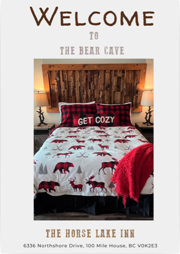 With comfort in mind, each apartment’s decor has been influenced using colours from the Cariboo’s past, and is a delightful mix of rustic modern and antique furniture blended with yellow Cedar cabinetry and mouldings, solid yellow Cedar doors and designer linens to make your stay a great experience!